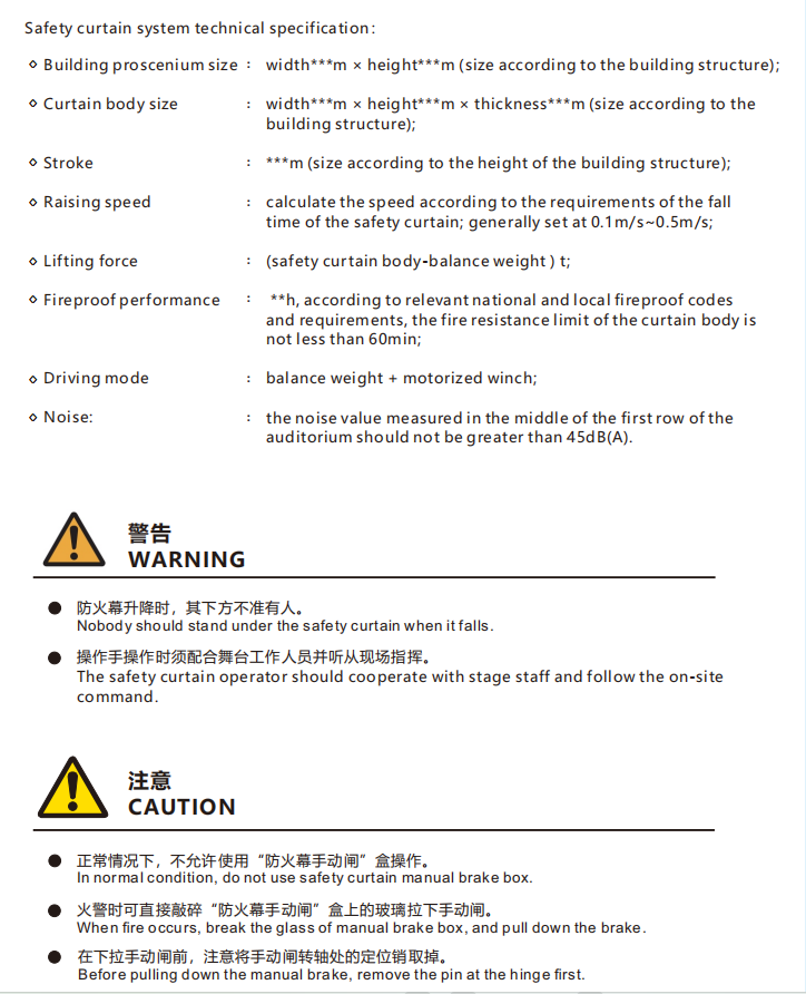 厅或舞台以外的区域,起到防止火灾蔓延的作用。防火幕幕体为刚性结构,是通过卷扬方式垂直升降的设备。